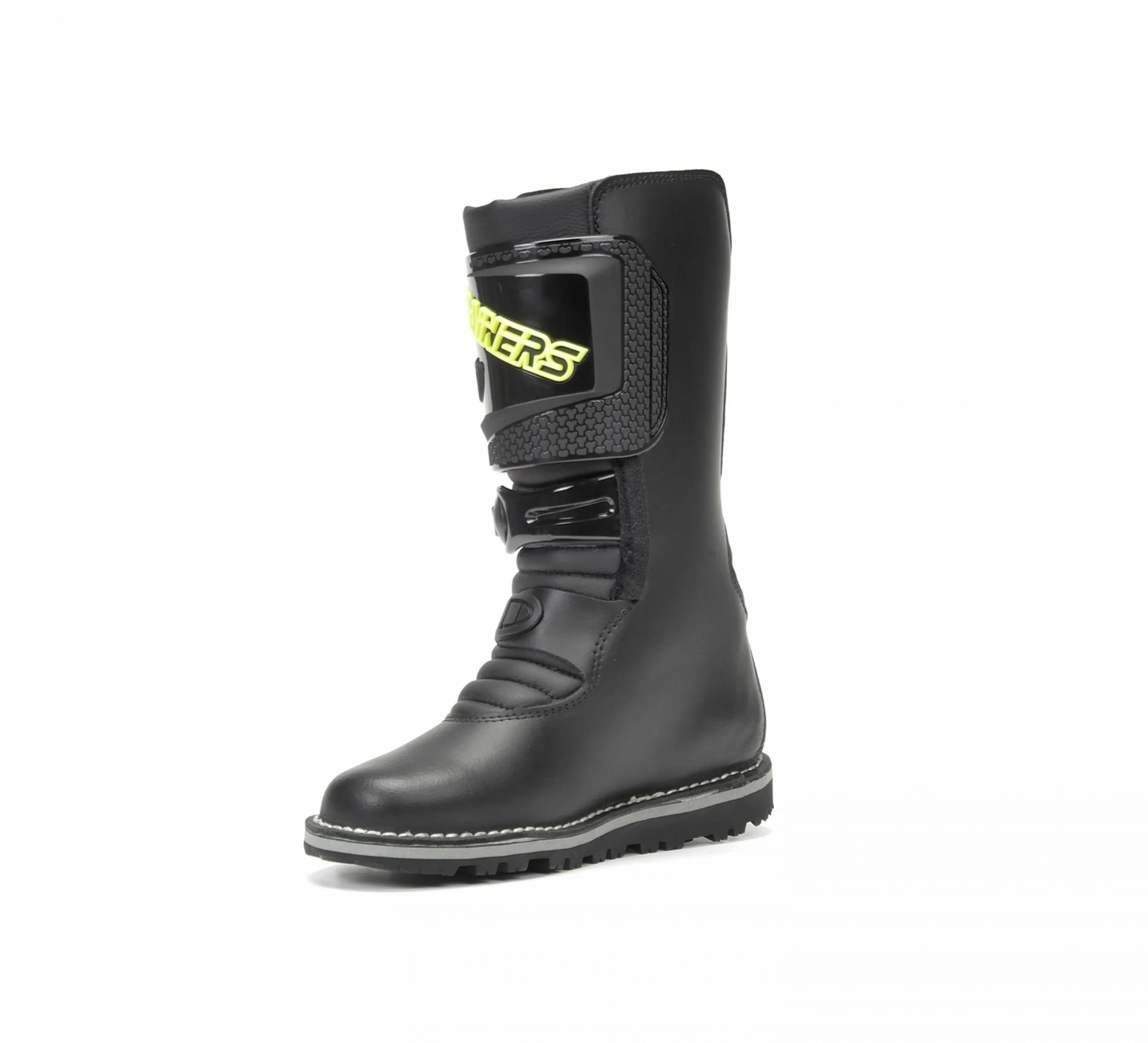 Bota para la práctica de Trial, uno de los deportes que más impacto recibe, por ello debes asegurarte que adquieres un buen producto, lo más importante es fijarse en la suela debe ser de tacos con un buen dibujo para tener un buen agarre a las piedras y las estriberas, también debe ser una bota muy flexible para que la movilidad sea lo más blanda y rápida posible sin forzar el pie, aunque al principio todos sabemos que lo nuevo es duro!, tenemos que darle uso y tiempo para acomodarla a nuestro pie, fíjate también en las protecciones que lleva, sobre todo la frontal, tiene que tener la consistencia necesaria para soportar el impacto. Todos estos detalles los puedes encontrar en este modelo, fabricado exclusivamente para hacer que tu deporte favorito siga siendo el mejor!. Por último informaros, que este es producto nacional y somos nosotros mismos quien lo fabricamos.